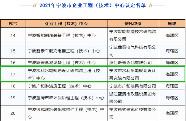 我院成功獲得2021年寧波市企業工程(技術)中心認定