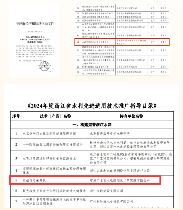 喜報 | 我院三項成果先后入選《2024年度寧波市優(yōu)質產(chǎn)品推薦目錄》《2024年度浙江省水利先進適用技術推廣指導目錄》