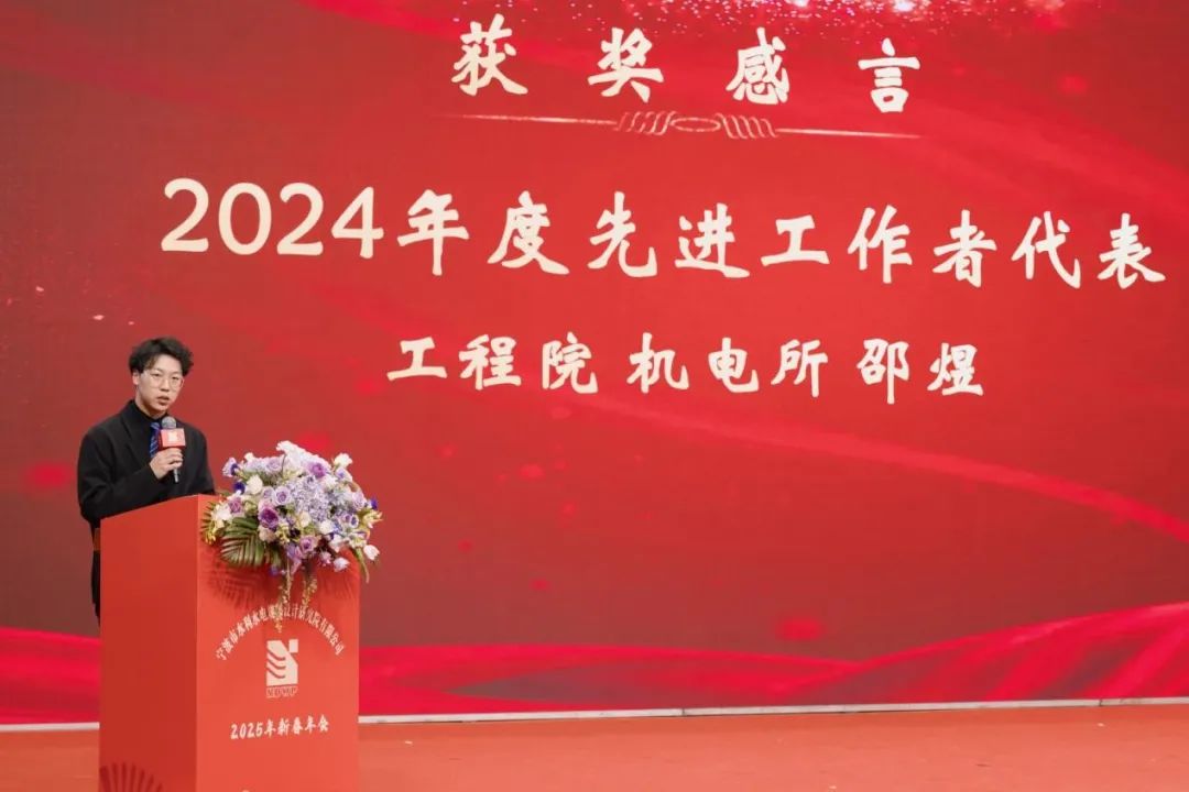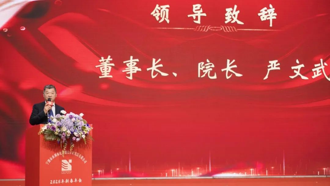 我院董事長、院長嚴文武的致辭為晚會拉開序幕。嚴院長表示,2024年,全院團結一致,協同發力,攻堅克難,用一張優秀的成績單為我院新征程吹響了號角;2025年,我院新大樓的落成,這是我院發展的新的里程碑,也是邁向新征程的起點,希望所有員工共享新家園,愛護新家園,繼續傳承和發揚寧波院人堅持不懈的優良傳統,再創佳績!最后,嚴院長對所有員工的辛勤付出表示感謝,致以祝福,祝愿寧波院在2025年乘風破浪,再創輝煌!