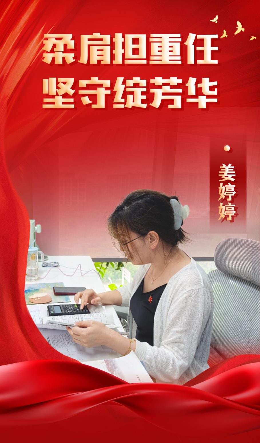 姜婷婷同志用十五年的堅守證明,平凡崗位也能綻放光彩。她以堅定的理想信念、過硬的專業素養、無私的奉獻精神,在平凡崗位上詮釋著一名共產黨員的初心和使命,是新時代水利工作者的優秀代表。