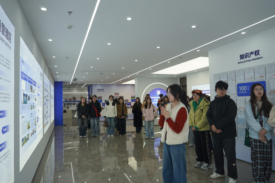 這場研學在水院展廳拉開序幕。在講解員的引導下,研學團通過豐富的圖文資料,在展廳沉浸式了解我院的發展歷程、成果業績、企業文化,全方位感知我院在涉水產業、科技創新、團隊建設等領域的綜合實力與發展成果。每一塊展板都在訴說著寧波院人砥礪前行的故事,讓同學們對水利行業有了更直觀、更深刻的認識。