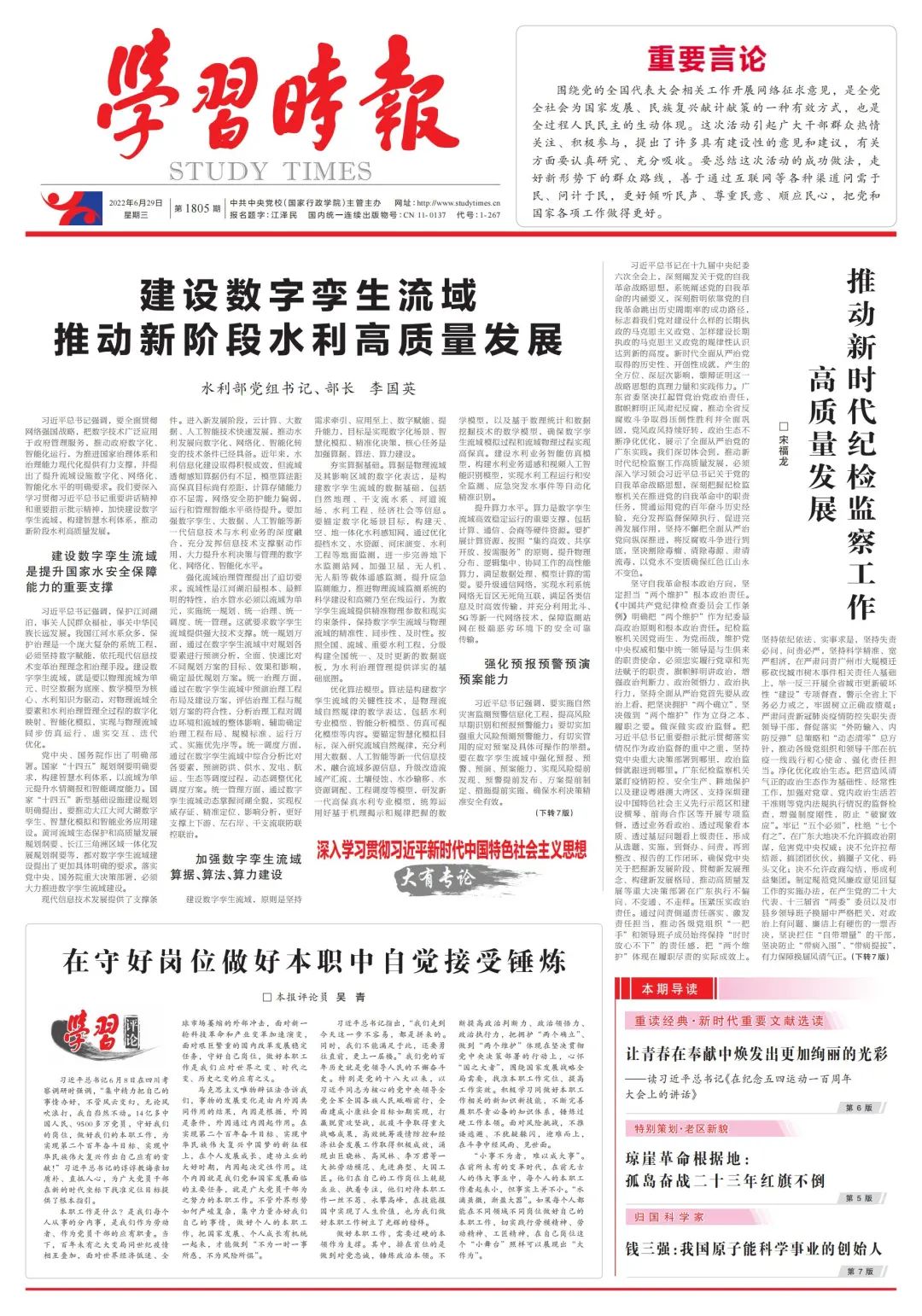 水利部黨組書記、部長李國英:建設數(shù)字孿生流域 推動新階段水利高質量發(fā)展