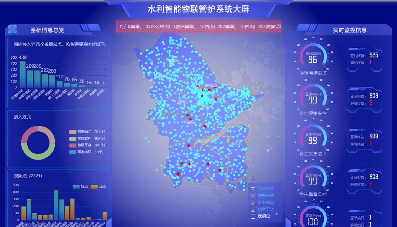 智慧水利物聯管護平臺,對水利各部門、各廠商、各類型監測設備的,健康狀態與數據傳輸等進行統一管理,實現水利要素實時“感知-互聯”,強化水利物聯感知監管,為智慧水利建設提供基礎支撐。