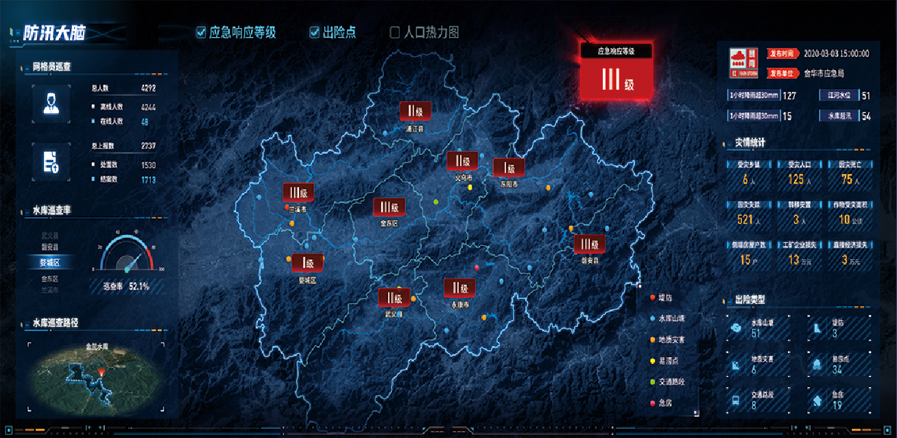 防汛中樞匯集多部門防汛數據資源,聚焦未來降雨、干流洪水、城區內澇、山洪災害、臺風風險、海上防臺等業務領域,基于水利專業模型與云計算、大數據分析等新興技術的融合,通過多維度數據透視監控預警、精細風險評估、智慧應急響應、應急調度決策等手段,全方位提升防汛應急指揮能力,減少洪澇臺旱災害帶來的損失。
