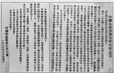 ▲中共五大大會宣言