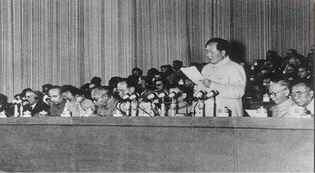 ▲毛澤東在中共八大上發表講話