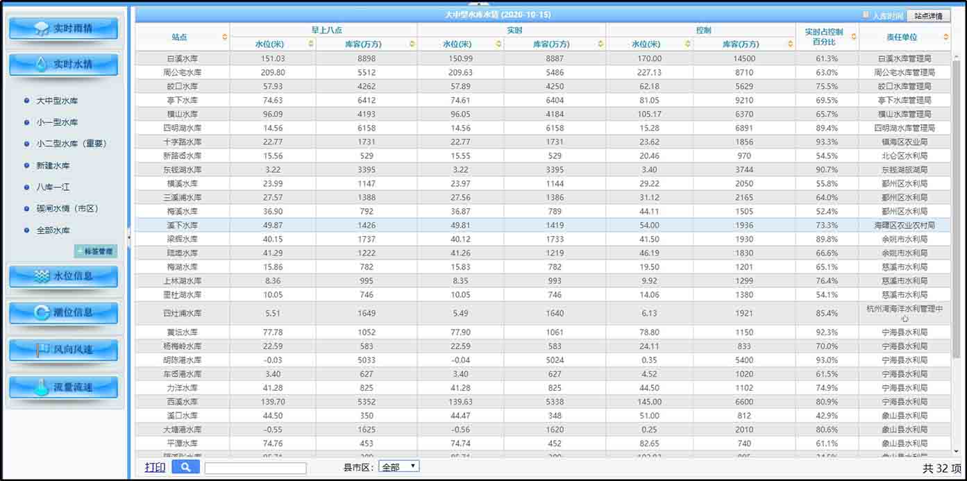 系統采用HTML5web技術,提供各類水情、雨情、潮位、流量監測、風向風速等信息的發布、查詢、統計管理。