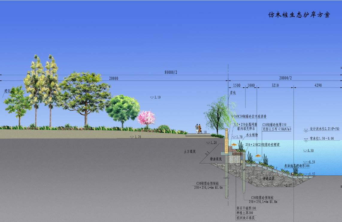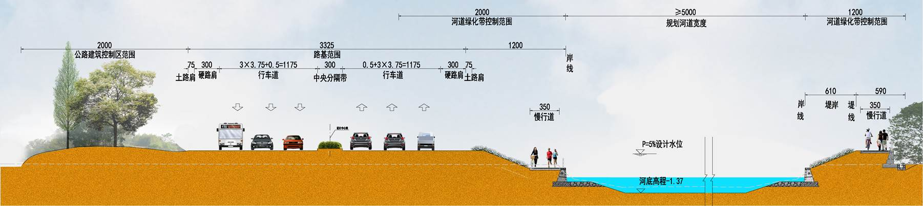 工程位于海曙區(qū)西側(cè),南起鄞江,北至姚江,為實(shí)現(xiàn)對(duì)海曙西側(cè)山區(qū)洪水的攔截,共整治河道長(zhǎng)24km,建設(shè)閘站40座,閘門總凈寬554m,泵站22m3/s,改建新建橋梁42座。其中有3.5km與G228國(guó)道并線,為協(xié)調(diào)國(guó)道與河道之間用地布局,通過優(yōu)化河道斷面型式和堤線線位,實(shí)現(xiàn)了對(duì)土地的集約利用,打造一條海曙西部交通和河道的靚麗風(fēng)景線。