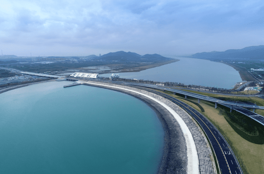 本工程是集防潮防洪、漁業(yè)避風(fēng)、疏港交通、環(huán)境治理、濱海旅游等功能于一體的綜合型水利工程,位于梅山水道北端,包括海堤810m、中型水閘一座。