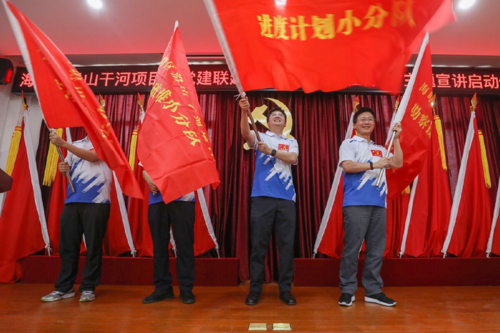 為響應“把支部建在項目中,把黨旗插到工地上”的號召,充分發揮黨建在項目推進中的引領作用,為項目攻堅破難、順利實施找準“定盤星”、把穩“方向盤”,“沿山干河項目臨時黨支部”正式揭牌,并成立了勘察設計、技術破難、融資保障、進度計劃、征遷攻堅等五個小分隊,同時向五位主題宣講員頒發了聘書。我院工程院院長高煒杰入選臨時黨支部支委成員,何國華作為勘察設計小分隊代表接受授旗,何國華、陳欣、褚洪康受聘為主題宣講團成員。