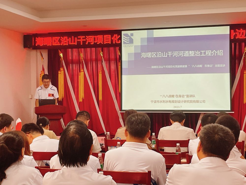 作為項目設計單位,我院將依托沿山干河項目臨時黨支部,積極發揮黨員的先鋒模范作用,派出精兵強將,全力做好重大項目的技術支撐工作,為推進海曙水利建設和黨建工作大融合、大提升、大發展貢獻力量。
