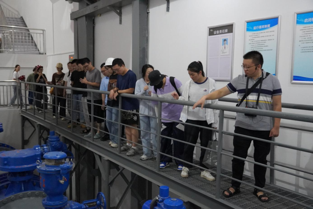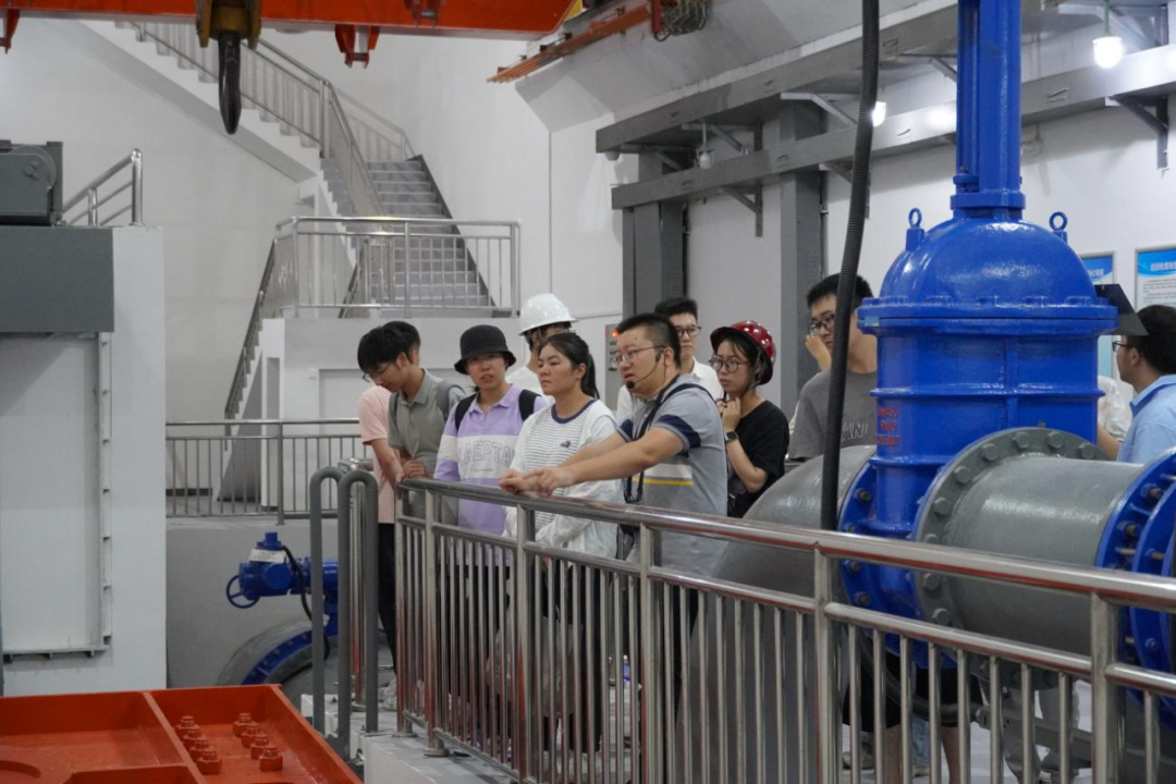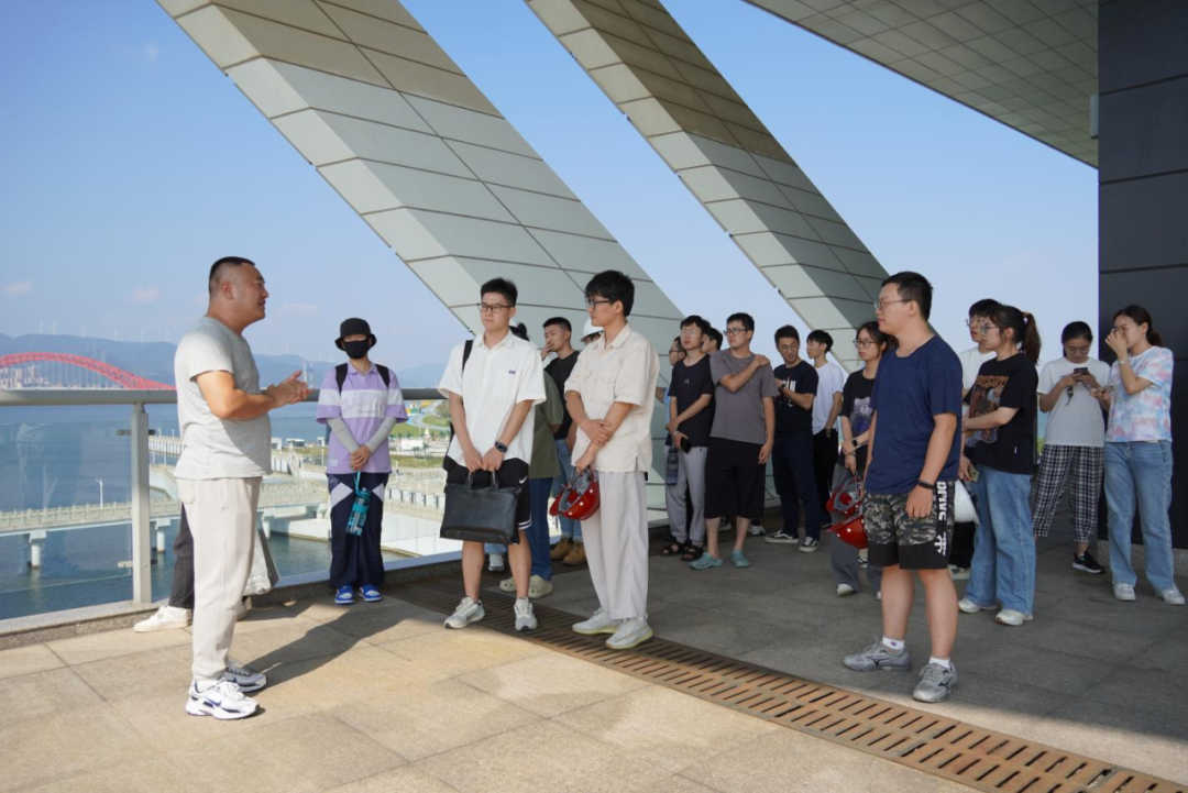 最后,研學隊伍來到北堤樞紐參觀。該工程榮獲中國建筑行業工程質量的最高榮譽獎——2020-2021年度第一批中國建設工程魯班獎。胡經理帶領研學隊伍依次進入啟閉機房、觀景臺、控制室等處,現場講解工程設計思路、建造工藝和管理要點。
