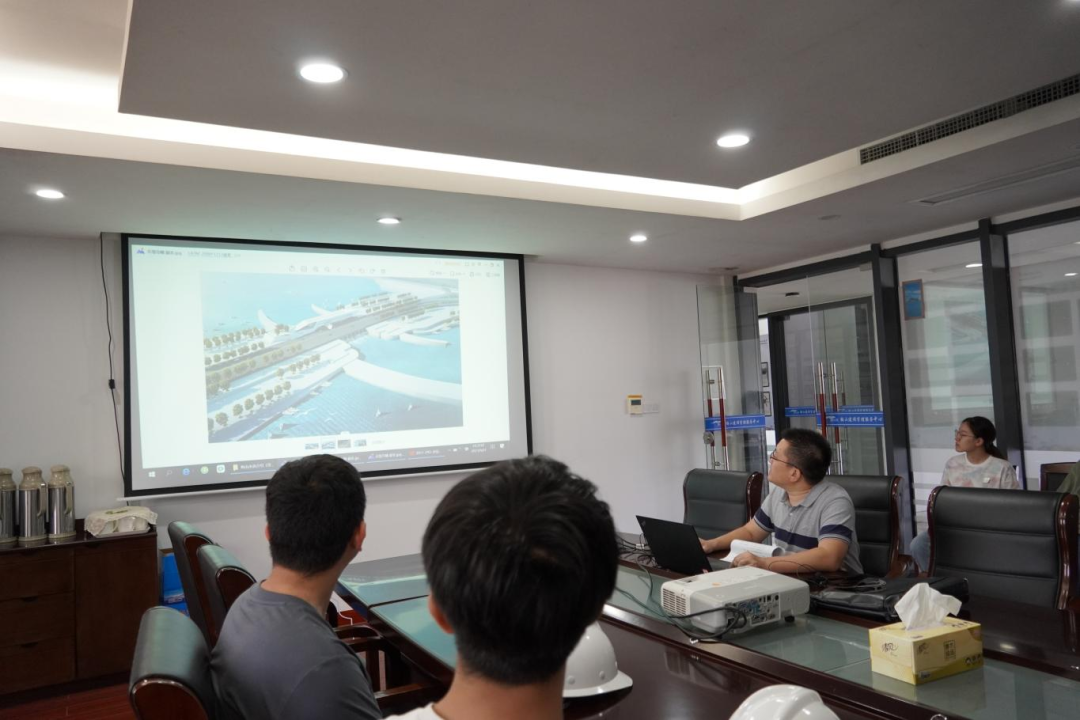 接著,研學隊伍來到會議室,胡經理結合建設目標、工程建設客觀因素、工程效益和景觀效果,詳細講解設計思路、問題對策和創新點,為大家上了一堂嚴謹生動的復盤課。比如海堤采用緩坡入海,外側采用異形結構塊消浪,內坡采用生態水工磚美化,使海堤具備結構和生態景觀雙重效果;船閘與海堤銜接段軟土處理采用新型技術應用——樁網復合地基,形成“樁-網-土”協同工作共同承載的復合工藝。在座職工認真聆聽梅山灣如何從曾經的“漲潮黃沙水,落潮滿目泥”到如今的“水清、岸綠、波寧、潮平”,受益匪淺。