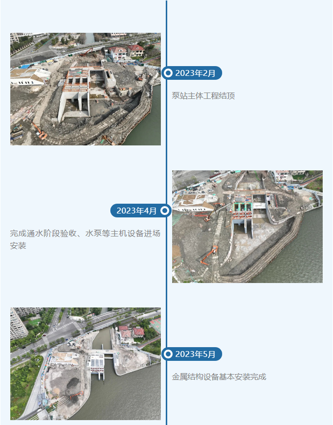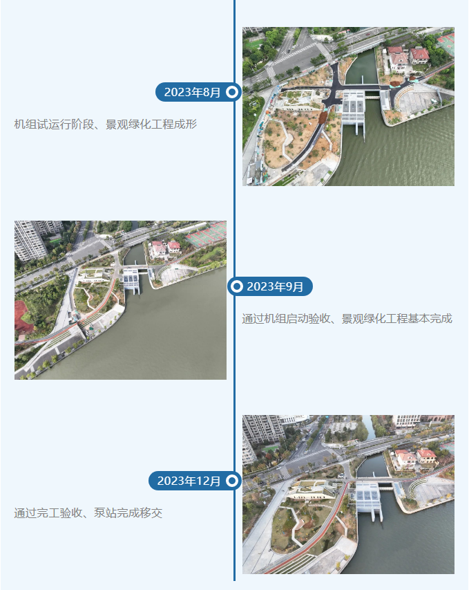 據悉,寧波市清水環通(一期)工程是浙江省重點水利工程,是寧波市河道水環境綜合治理生態提升專項行動的龍頭工程。洋市中心河泵站位于江北區洋市中心河姚江出口處,由洋市中心河閘站、洋市中心河北閘、李馮河閘組成,工程于2021年12月開工,歷經不到兩年完工,現已正式投入使用,工程總投資超一億元。
