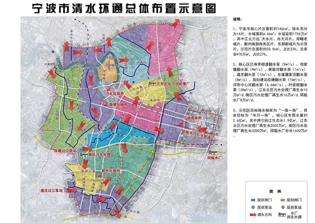 據悉,該項目將于今年完工。建成后將通過泵引閘排、分區節制、水系溝通、水體流動,對河網水系進一步理順,構建現代化城區水網體系,進一步實現生態引調水總量、效率、質量的提高,同時兼顧原老江東、老海曙的分級防護,綜合提升河道水環境質量和內澇治理能力。