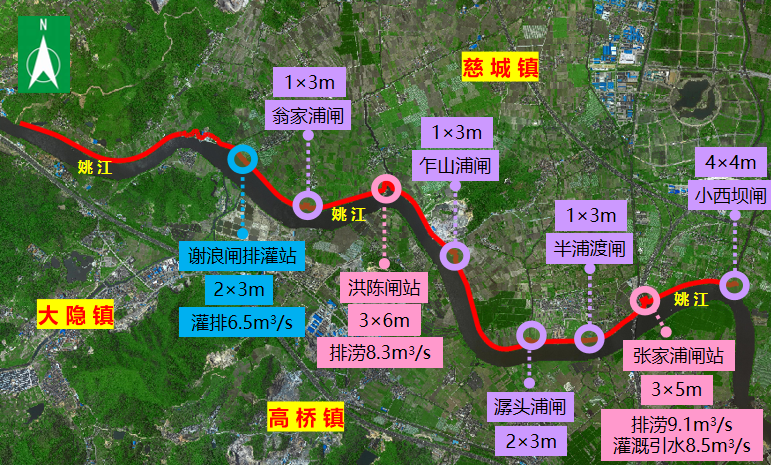 江北區姚江干流堤防維修加固工程(慈城段)位于寧波市江北區慈城鎮,主要內容為:整治堤防長度10.25km,新建閘站2座、水閘5座,維修加固排灌站1座。本工程在滿足防洪排澇的前提下,綜合考慮水利設施的造型美觀及河濱的綠化、休閑等,滿足人們親水及游樂的需求。