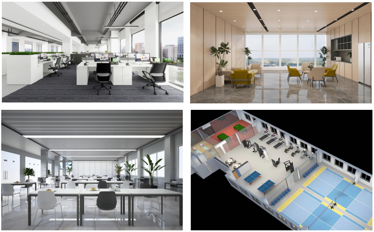 ▲辦公區、休閑區、用餐區、健身區環境效果圖