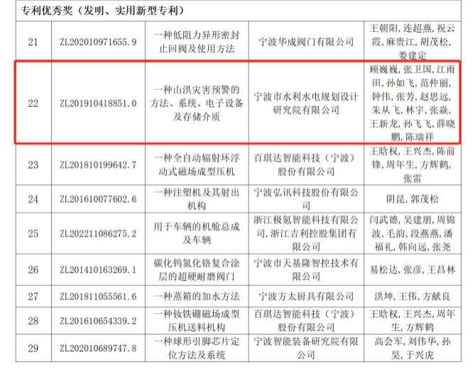 近日,寧波市市場監督管理局公布了第三屆寧波市專利創新大賽獲獎項目名單,我院提交參賽的發明專利“一種山洪災害預警的方法、系統、電子設備及存儲介質”榜上有名,獲得本次大賽的“專利優秀獎(發明、實用新型專利)”。