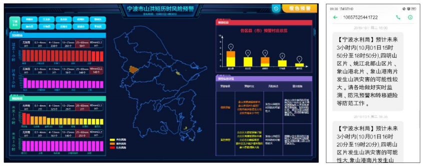 作為我院防汛減災領域關鍵技術布局的組合專利的核心專利,該專利解決了國內山洪災害預警的關鍵性技術難題。針對“縣級山洪災害監測預警系統存在預警預見期不足、預警精確性不足和缺少對區域山洪風險整體形勢把控”的問題,專利及相關技術提供了一種基于氣象短臨降雨預報數據驅動的山洪預報預警方法與系統。并已在寧波市、金華市、黃山市、衢江區、東錢湖等多個城市及地區得到成功應用,為山洪災害預警機制、工作方案的制訂提供了核心的技術支撐。其中,寧波市在2018-2023 年間山洪災害防御工作部署得當,無人員死亡,依托“基于信令大數據的預警信息靶向推送”技術成果,向社會公眾精準推送山洪災害預警短信125余萬條,在歷次防汛防臺期間,實現了“不死人、少傷人、少損失”的目標。