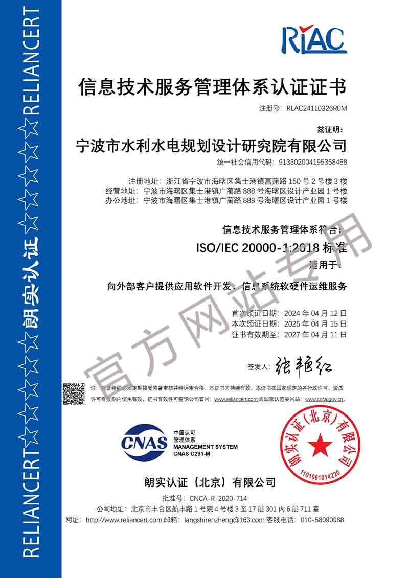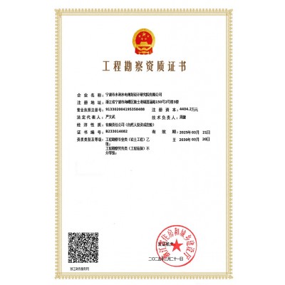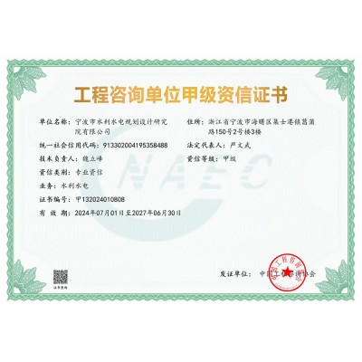 寧波院具有水利水電工程設(shè)計(jì)、工程勘察、工程咨詢、水土保持、水資源論證等多項(xiàng)資質(zhì)。承擔(dān)中小河流域規(guī)劃、水庫(kù)、河道整治、灘涂圍墾等工程的勘察、設(shè)計(jì)、咨詢、總承包業(yè)務(wù),以及各領(lǐng)域建設(shè)項(xiàng)目的防洪評(píng)價(jià)、水資源論證、水土保持方案編制、水土保持監(jiān)測(cè)、計(jì)算機(jī)行業(yè)CMMI 3級(jí)認(rèn)證、知識(shí)產(chǎn)權(quán)管理體系認(rèn)證等。